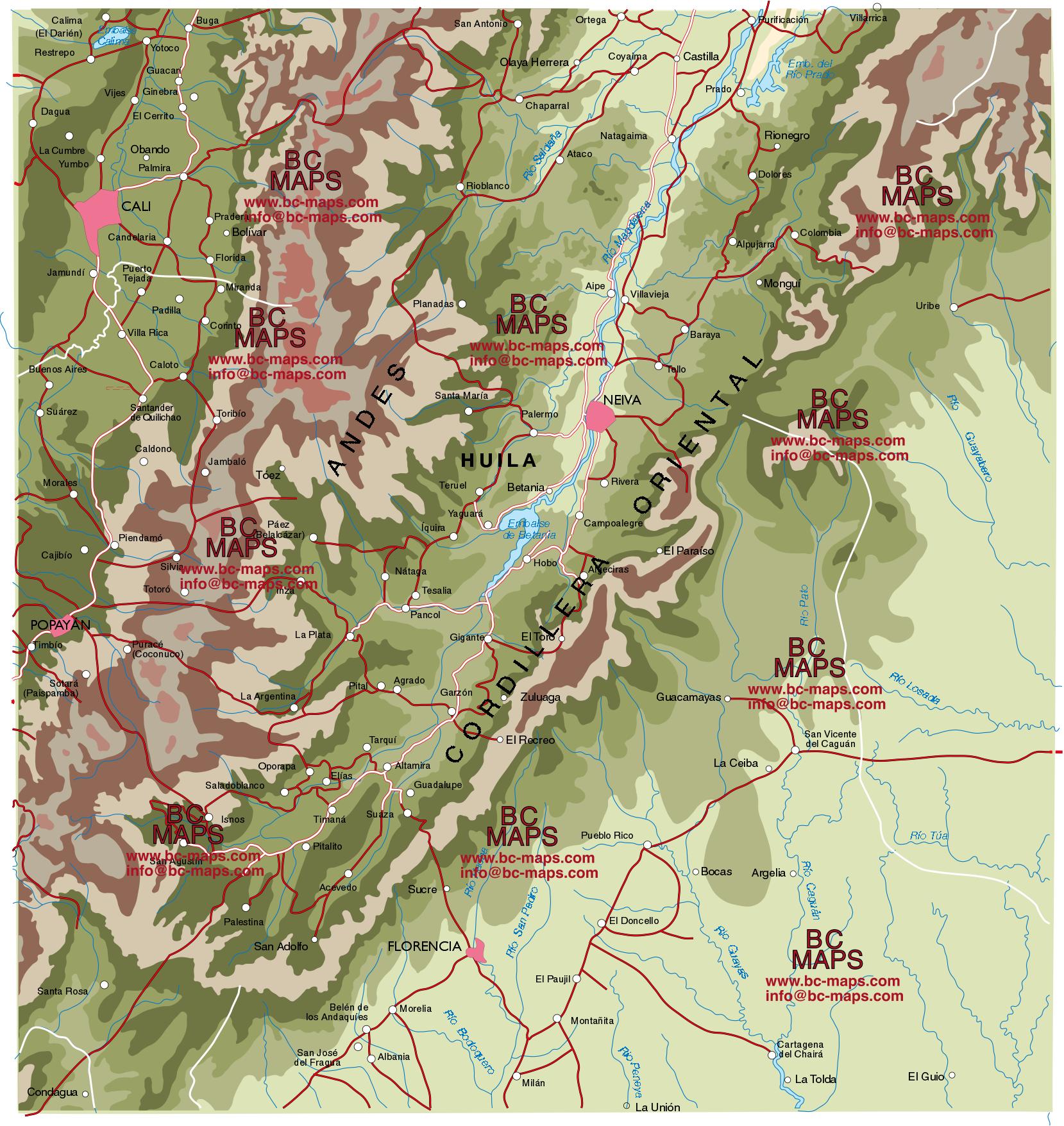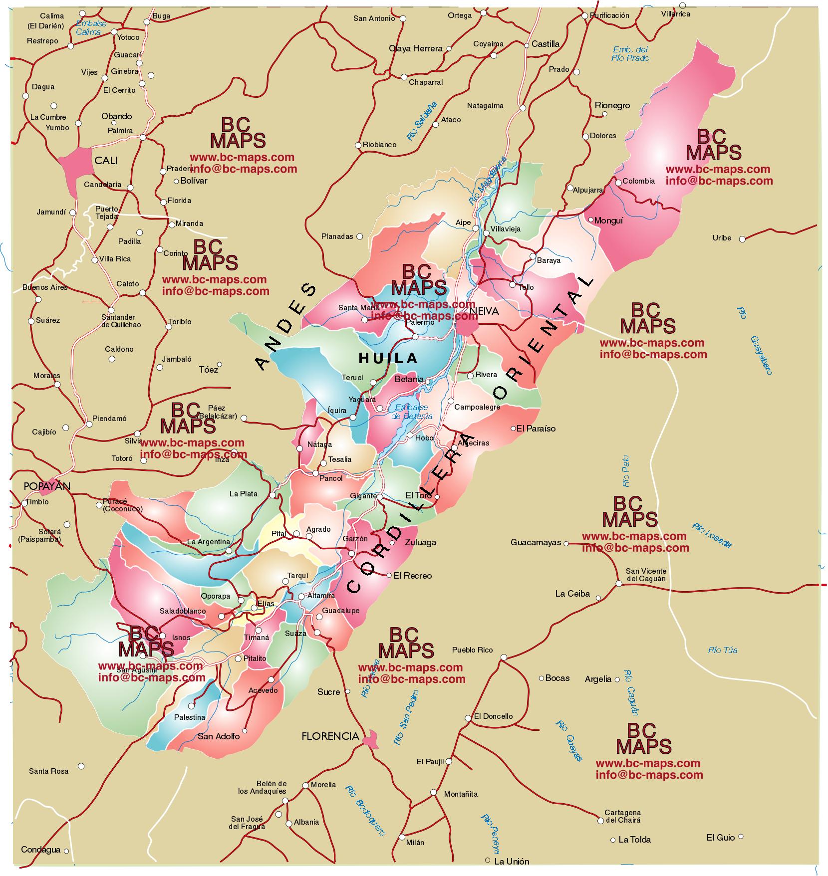 Todos nuestros mapas se adapatan a sus necesidades,aquí tiene dos ejemplos de Huila a escala 1000000 en jpg