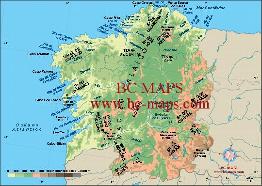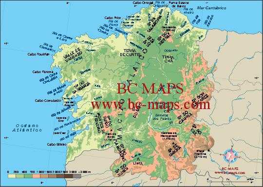 Mapa vectorial editable de la Comunidad de Galicia Físico