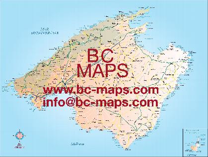 Mapa vectorial editable de carrteras de las isla de Mallorca