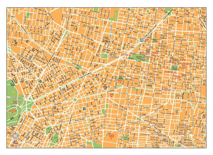 Mapa vectorial editable del centro de México DF