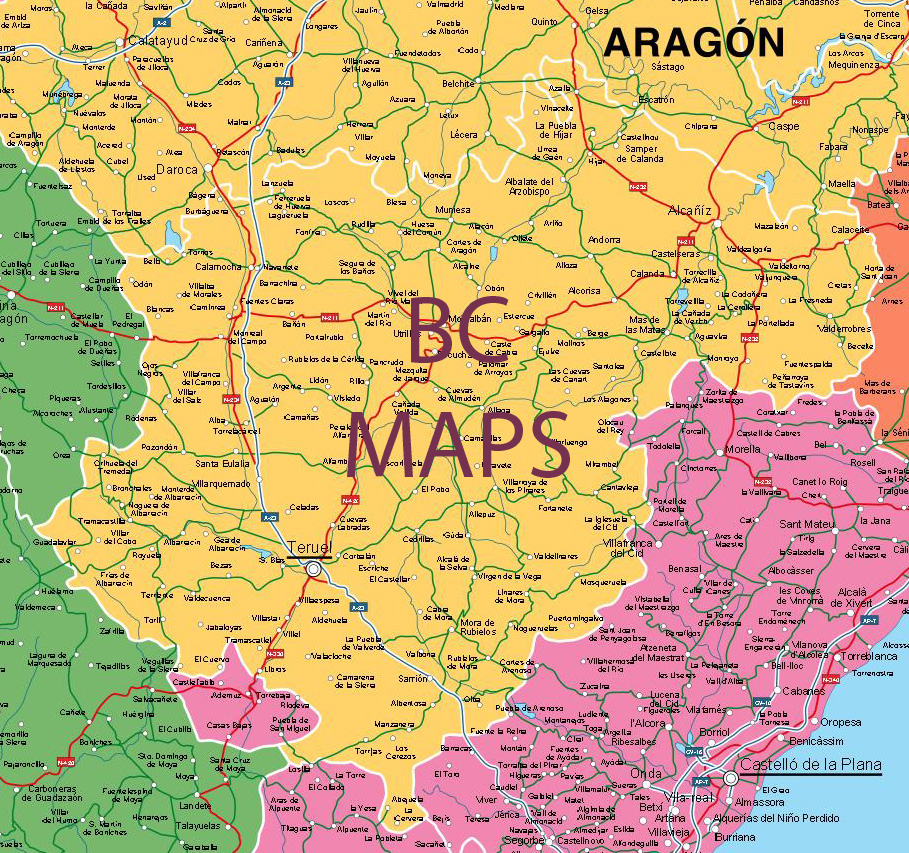 Mapa vectorial editable de la provincia de Teruel